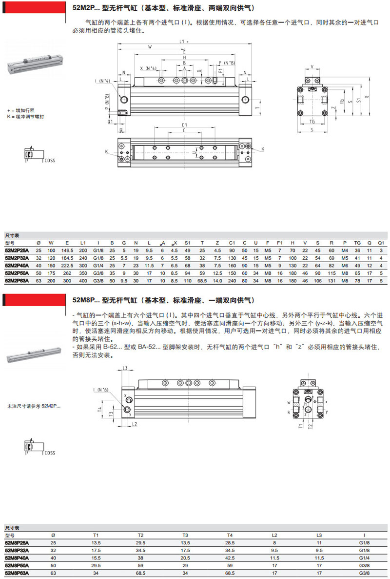 2M2P25A0500,52G2P32A0500,52R2C40A0500,52G8C50A0500,52M8C25A0500,camozzi氣缸