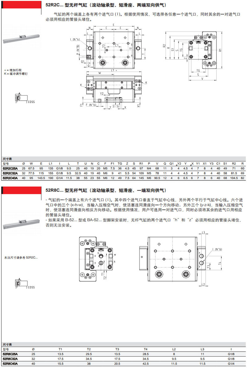 52M2P25A0500,52G2P32A0500,52R2C40A0500,52G8C50A0500camozzi氣缸