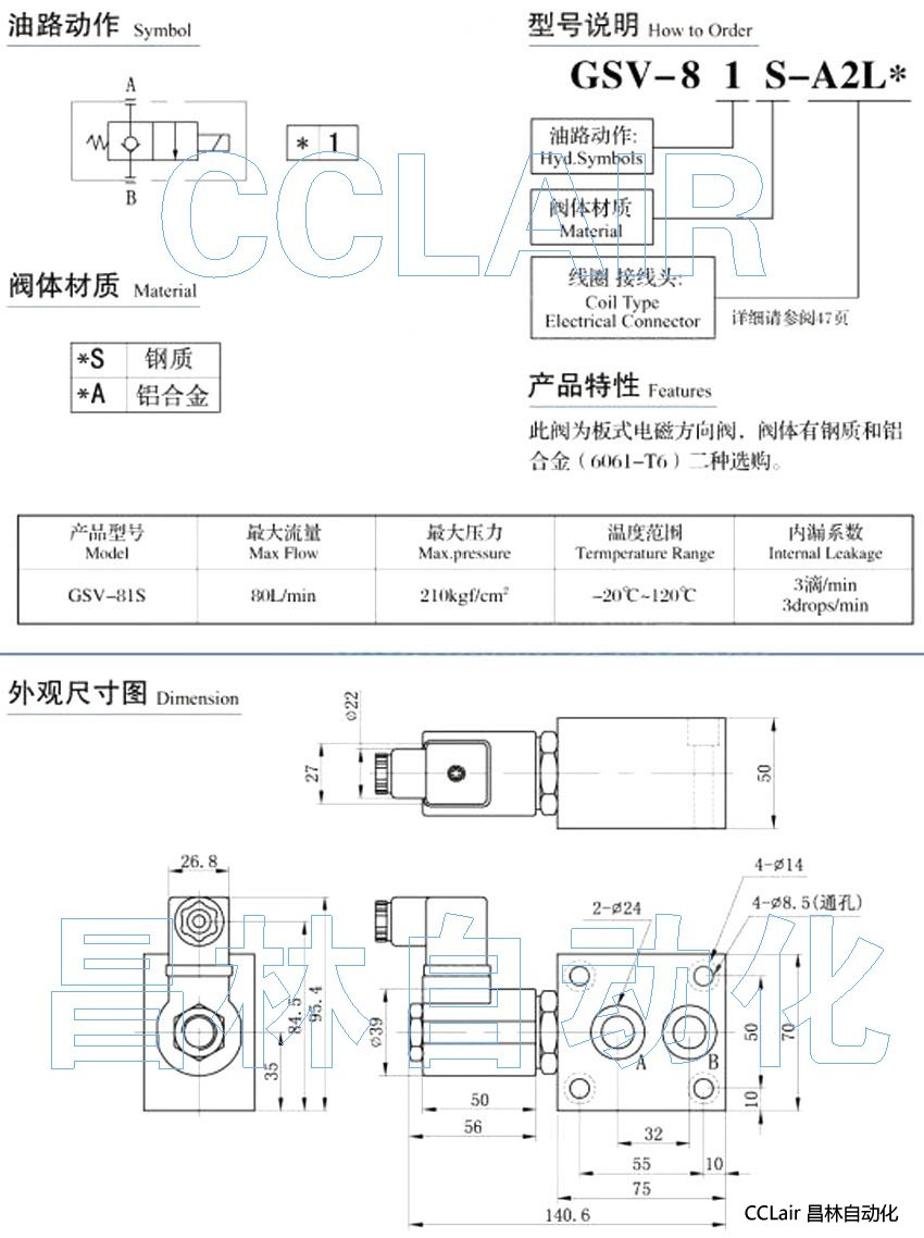 GSV-81S-A2L2,GSV-81S-A2L5,GSV-81A-A2L2,GSV-81A-A2L5,板式電磁方向閥