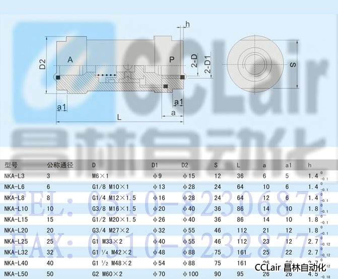 NKA-L3,NKA-L6,NKA-L8,NKA-L10,NKA-L15,單向閥