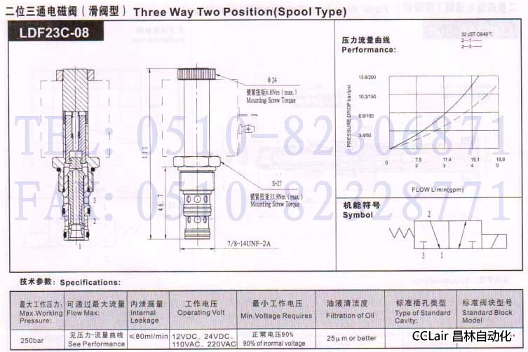 LDF23C-08,二位三通電磁閥