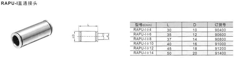 詳細信息 RAPU-I4,RAPU-I6,RAPU-I8,RAPU-I10,RAPU-I12,RAPU-I14,直通接頭