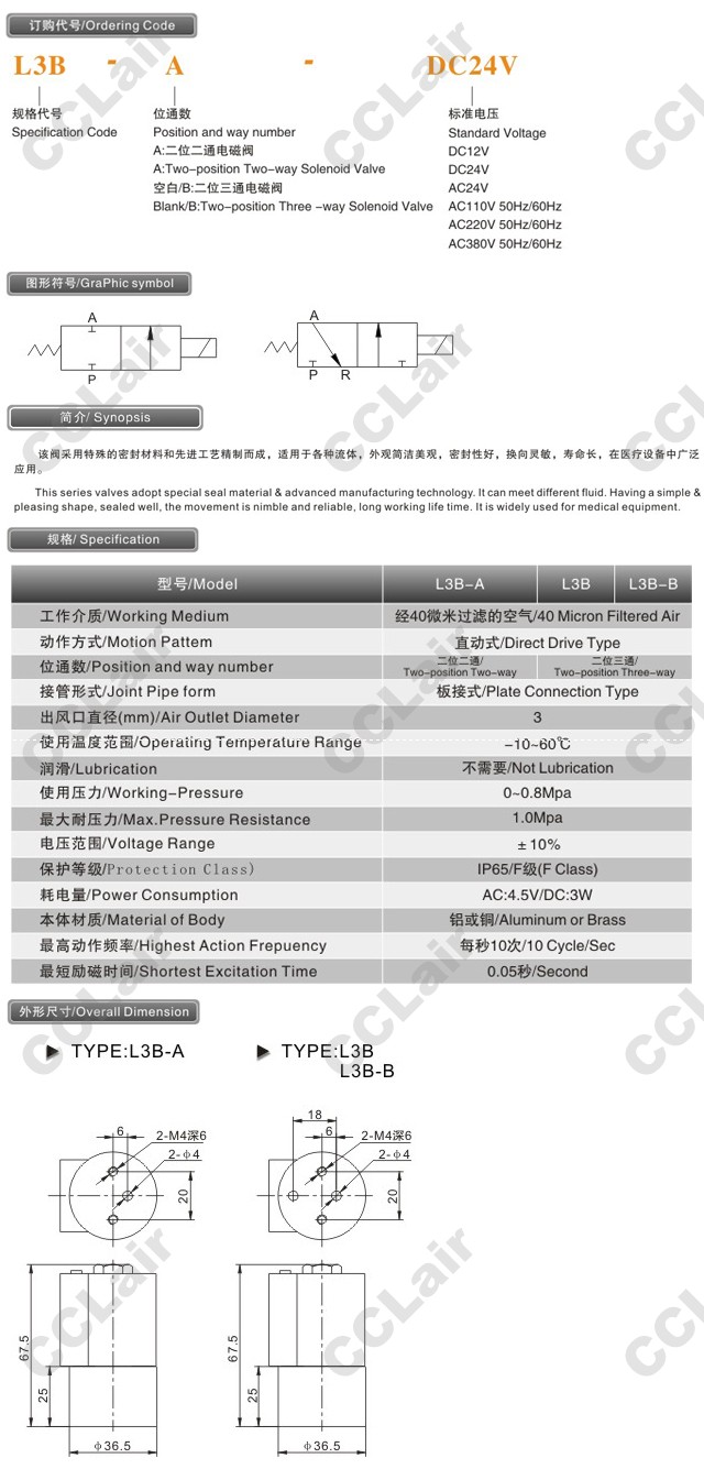 L3B-A-DC12V,L3B-A-DC24V,L3B-A-AC24V,CCLair L3B-A-AC110V,L3B-A-AC22012V,L3B-A-AC380V,