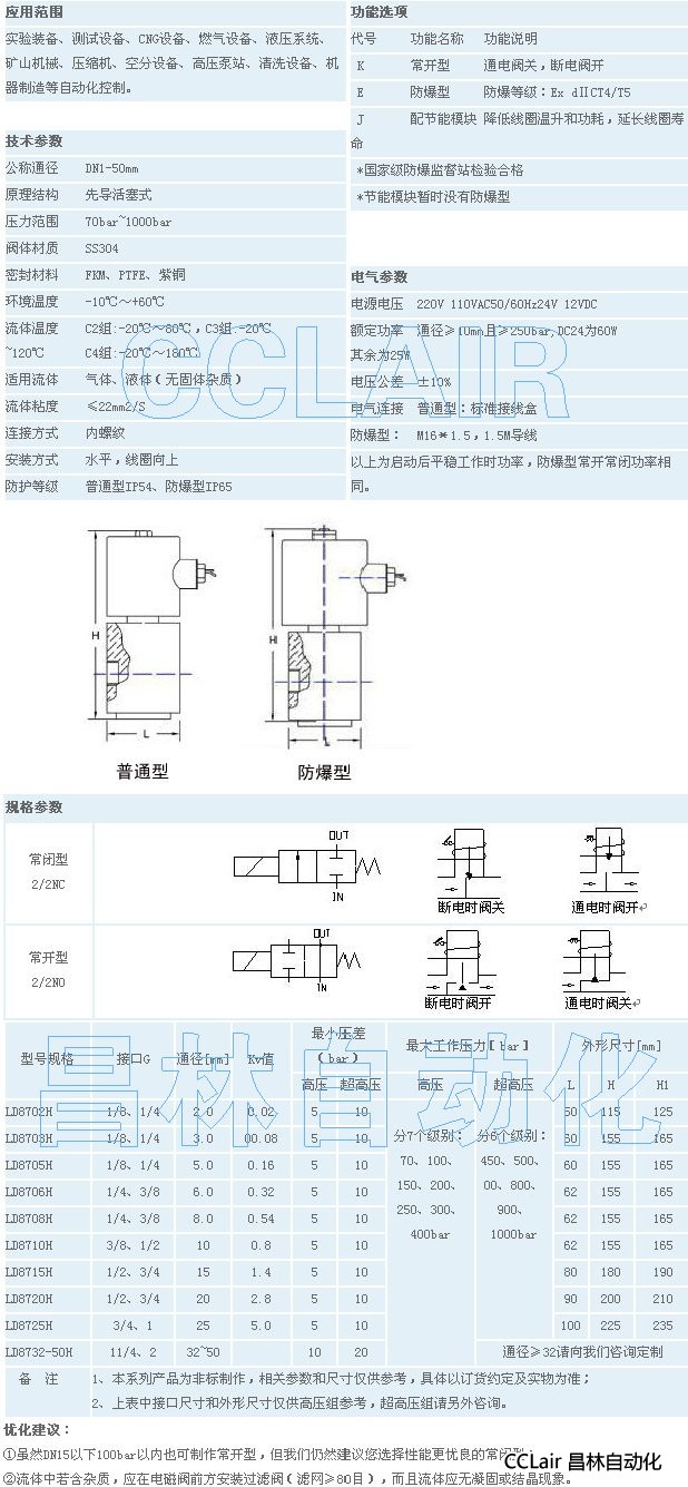 LD8702H,LD8703H,LD8705H,LD8706H,LD8708H,LD8710H,LD8715H,LD8732-50H,特制高壓電磁閥