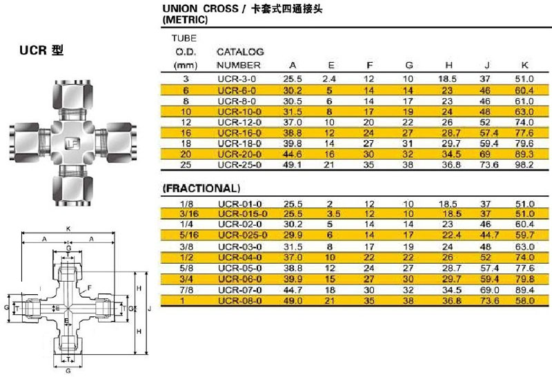UCR-3-0,UCR-6-0,UCR-8-0,UCR-015-0,UCR-02-0,UCR-04-0,卡套式四通接頭
