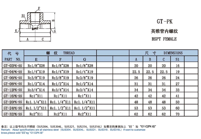 詳細(xì)信息 GT-02PK-SS,GT-04PK-SS,GT-12PK-SS,GT-24PK-SS,GT-32PK-SS,三通內(nèi)絲接頭