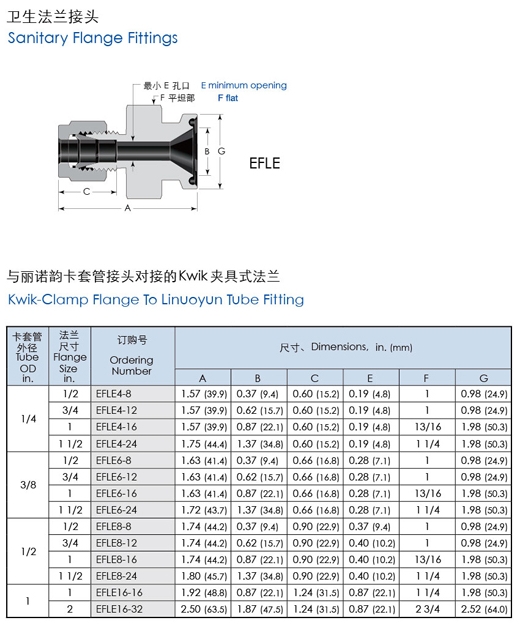 詳細(xì)信息 EFLE4-8,EFLE4-12,EFLE6-24,EFLE8-8,EFLE8-12,EFLE16-16,EFLE16-32,衛(wèi)生法蘭接頭