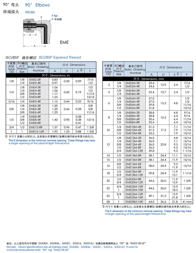 EME2-2R,EME4,EME5,EME6,EME8,EME12,EME14M,EME15M,EME20M,EME25M,直角終端卡套接頭