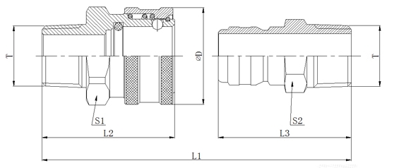 | 昌林液壓 | 國(guó)際標(biāo)準(zhǔn) | L1 | L2 | L3 | ?D | S1 | S2 | T | 母接頭編號(hào) | 公接頭編號(hào) |