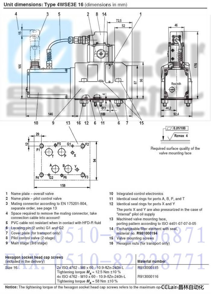 詳細信息 4WSE3E16V150E2X/VXY9/15K31C1,4WSE3E16V200D2X/VXY9/24K31C1, ,方向伺服閥,力士樂REXROTH,德國力士樂