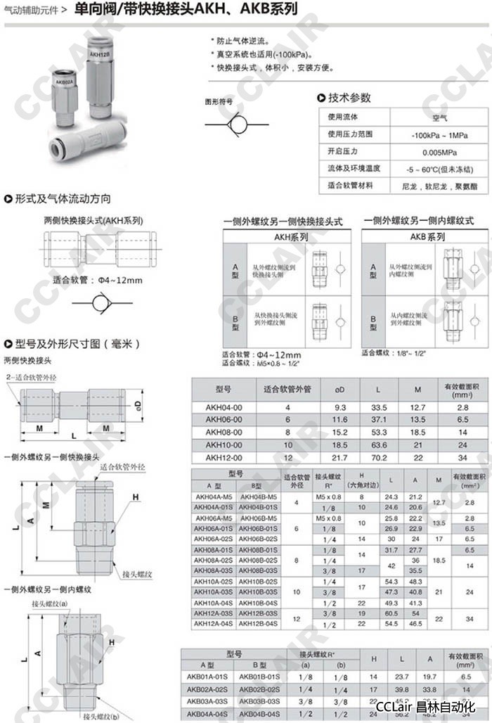詳細(xì)信息 AKH04B,AKH06B,AKH08B,AKH10B,AKH12B,單向閥