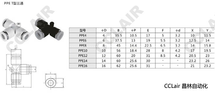 PPE4,PPE6,PPE8,PPE10,PPE12,PPE14,PPE16,T型三通接頭
