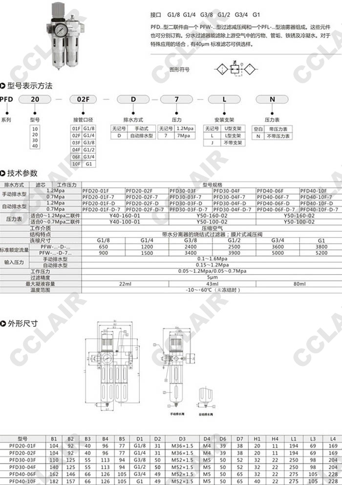 詳細信息 PFD40-01F,PFD40-02F,PFD40-03F,PFD40-04F,PFD40-06F,PFD40-10F,氣動二聯件