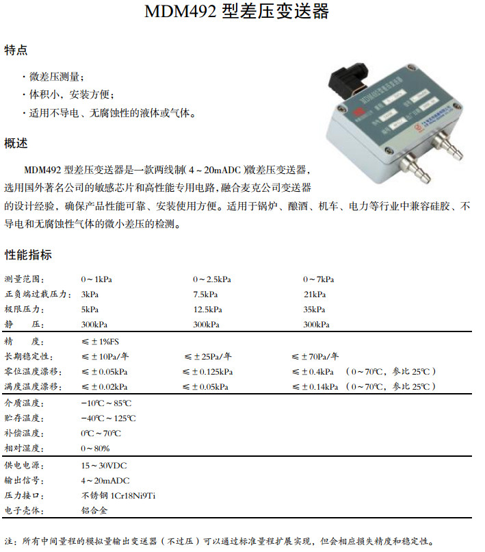 詳細(xì)信息 MDM492-0E,MDM492-1E,MDM492-2.5E,MDM492-7E,差壓變送器
