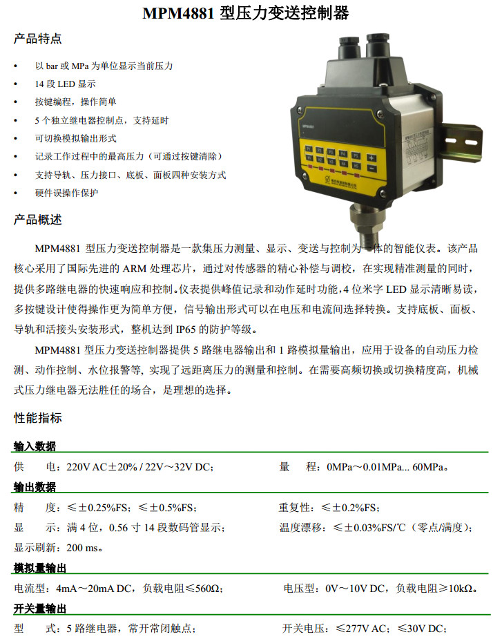 您當(dāng)前的位置:首頁(yè) » 產(chǎn)品&解決方案 » MPM4881-0AC,MPM4881-0.01AC,MPM4881-60AC,MPM4881-0DC,壓力變送控制器