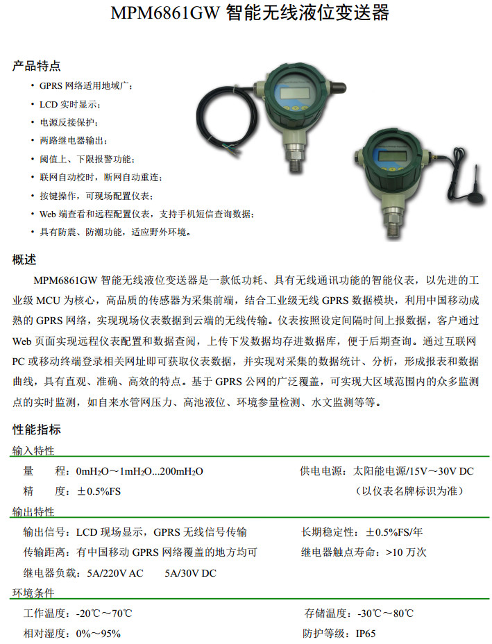 產(chǎn)品: 瀏覽次數(shù):613MPM6861GW,智能無線液位變送器