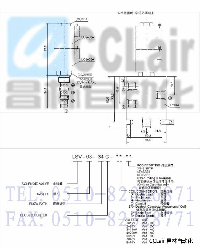 LSV-08-34C-3D,LSV-08-34C-3H,LSV-08-34C-3C,LSV-08-34C-3S,三位四通電磁閥,