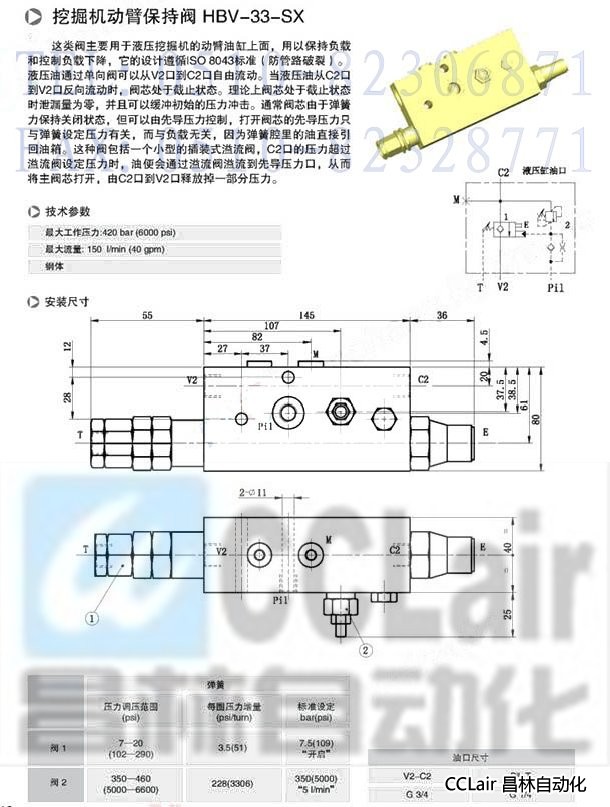 HBV-33-SX,挖掘機動臂保持閥