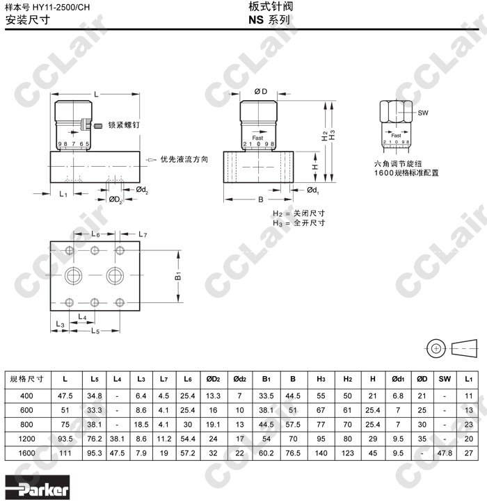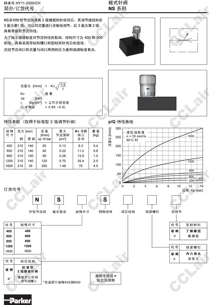 詳細信息 NS400S,NS400S4,NS600S,NS600S4,NS800S,NS1200S,NS1600S,NS400SV,NS400SF,NS400SFV,Parker板式針閥