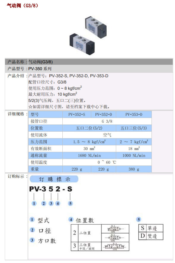 PV-352-S,PV-352-D,PV-353-D,PST氣動閥
