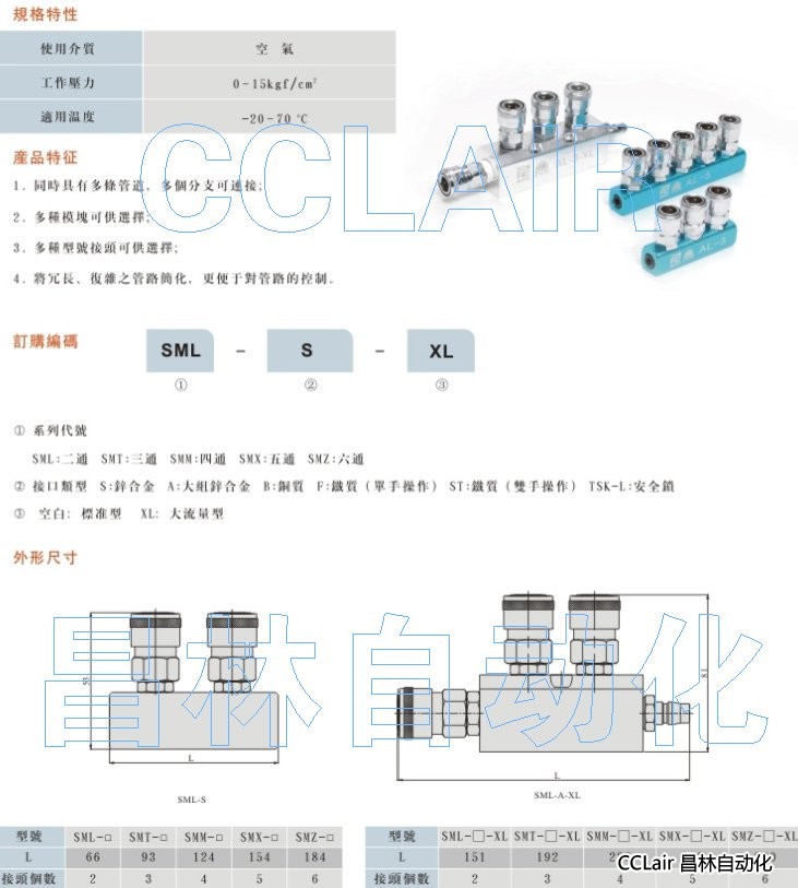 SML-S-XL,SMT-S-XL,SMM-S-XL,SMX-S-XL,SMZ-S-XL,SML-A-XL,SMT-A-XL,多管路接頭
