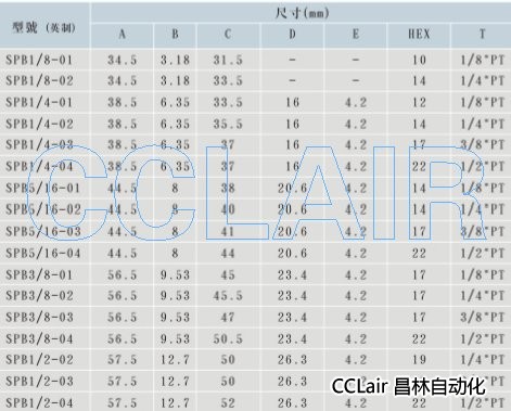 SPB1/8-01,SPB1/8-02,SPB1/4-02,SPB5/16-01,SPB3/8-01,SPB3/8-03,SPB1/2-04,接頭