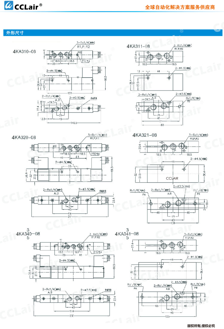 4KA311-08,4KA321-08,4KA331-08,4KA341-08,4KA351-08,先導式五通氣控閥
