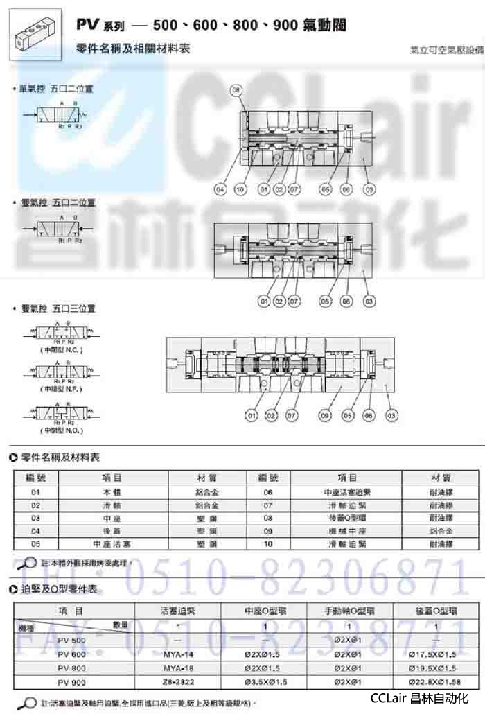 PV-5101,PV-6101,PV-6102,PV-8102,PV-8103,PV-9104,氣動閥