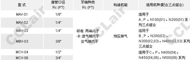 氣立可(chelic),MAV--01,MAV-02,MBV-02,MBV-03,MCV-04,MCV-06,氣源開關
