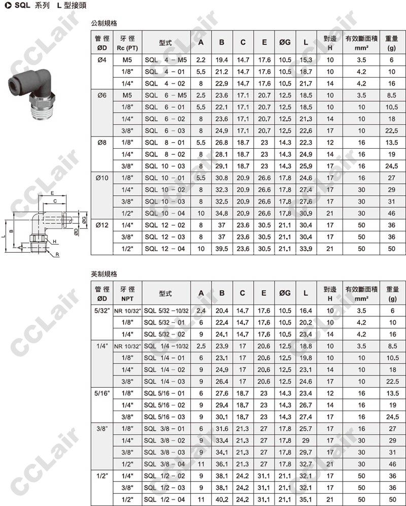 氣立可(chelic),SQL4-01,SQL6-01,SQL8,SQL10,SQL12,SQL5/32-10/32,SQL1/4,SQL5/16,SQL3/8,SQL1/2 |