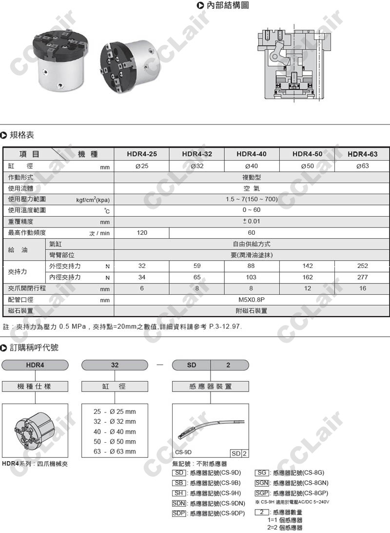 型號: 氣立可(chelic),HDR4-25-SD2,HDR4-32,HDR4-40,HDR4-50,HDR4-63,HDR425-SD2,HDR432-SD2,四爪機械夾