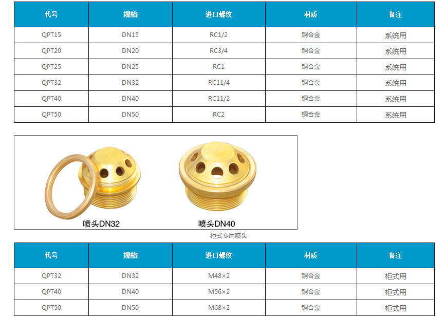 詳細(xì)信息 QPT15,QPT20,QPT25,QPT32,QPT40,QPT50,網(wǎng)管噴頭