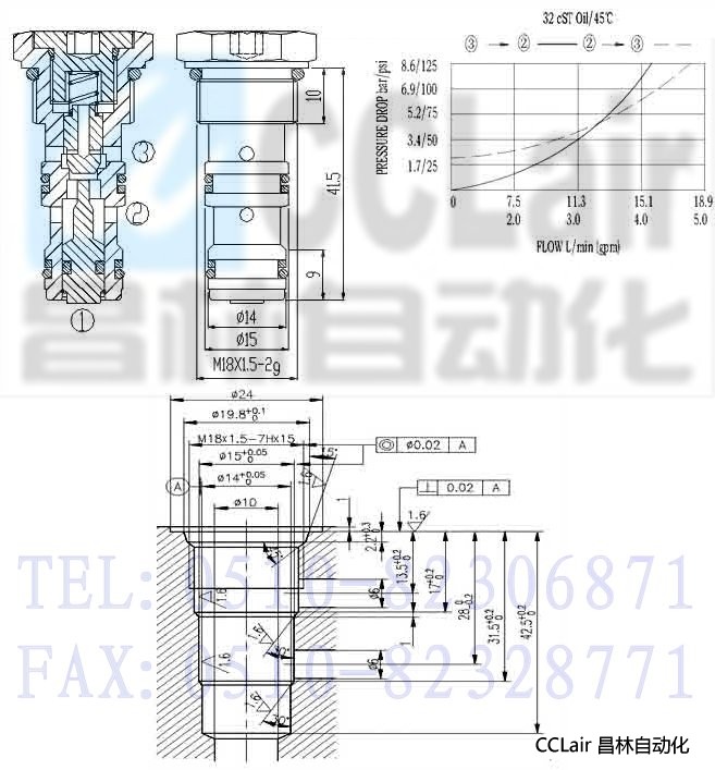 3, 此閥控制比為2.2:1,當1口壓力達到3口壓力的 1/2.2時,允許油液從3口到2口流通。