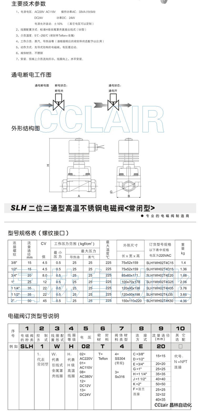 詳細信息 SLH1WH02T4C15,SLH1WH02T4D15,二位二通型高溫不銹鋼電磁閥(常閉型)