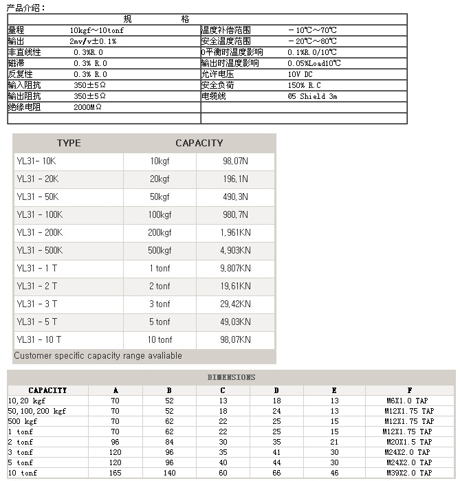 詳細信息 YL31-10K,YL31-20K,YL31-50K,YL31-3T,YL31-5T,YL31-10T,setech稱重傳感器