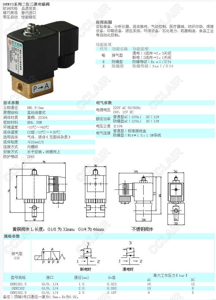 OKW2301.5,OKW2302,OKW2302.5,OKW23,二位三通電磁閥