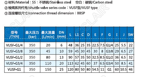 VUSF-G1/4,VUSF-G3/8,VUSF-G1/2,VUSF-G3/4,VUSF-G1,VUSF,梭閥