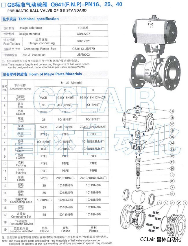 詳細信息 Q641F-16,Q641F-25,Q641F-40,標準氣動球閥