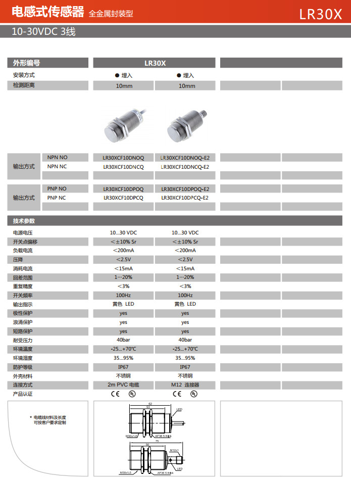 詳細信息 LR30XCF10DNOQ,LR30XCF10DNCQ,LR30XCF10DPOQ,LR30XCF10DPCQ,LR30XCF10DNOQ-E2,電感式傳感器