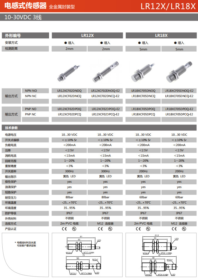 LR12XCF02DNOQ,LR12XCF02DNCQ,LR12XCF02DNOQ-E2,LR12XCF02DNCQ-E2,LR12XCF02DPOQ-E2,電感式傳感器