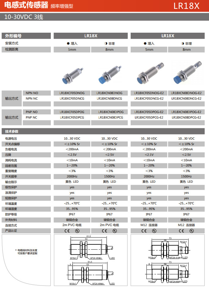 LR18XCF05DNOG,LR18XCF05DNCG,LR18XCF05DPOG,LR18XCF05DPCG,LR18XCN08DNOG,電感式傳感器