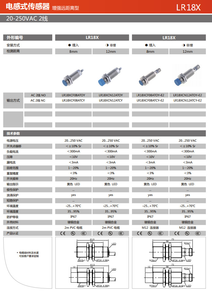 詳細信息 LR18XCF08ATOY,LR18XCF08ATCY,LR18XCN12ATOY,LR18XCN12ATCY,LR18XCF08ATOY-E2,電感式傳感器