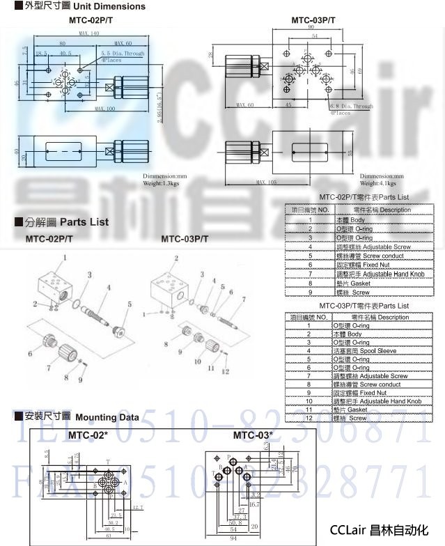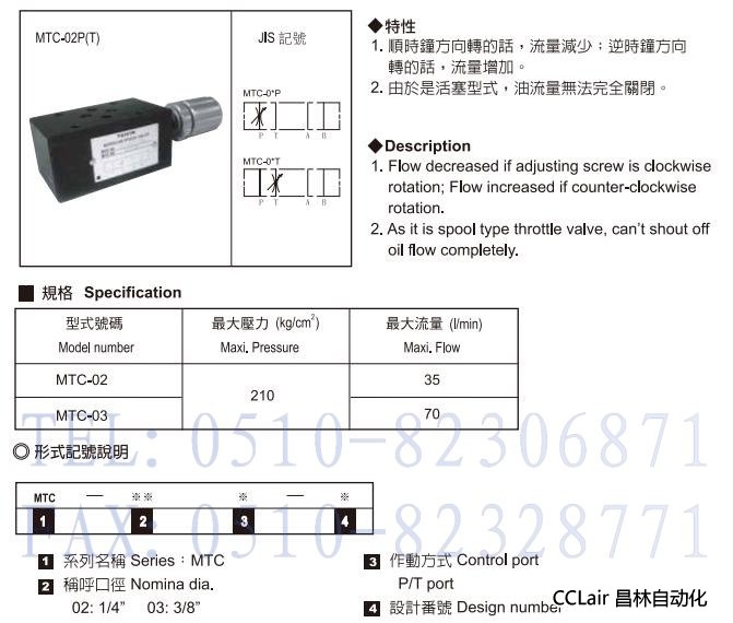 MTC-02P,MTC-03P,MTC-02T,MTC-03T,積層式流量控制閥