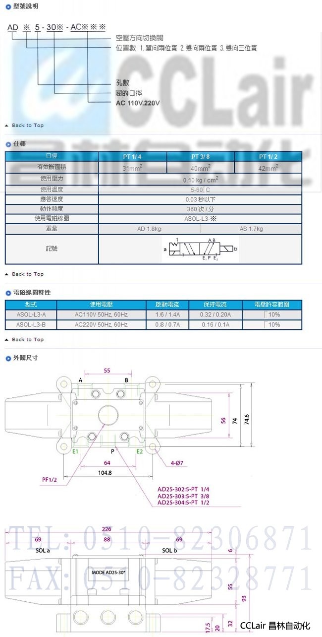 AD25-302, AS25-302,AD25-303, AS25-303,空壓用直動(dòng)式電磁閥