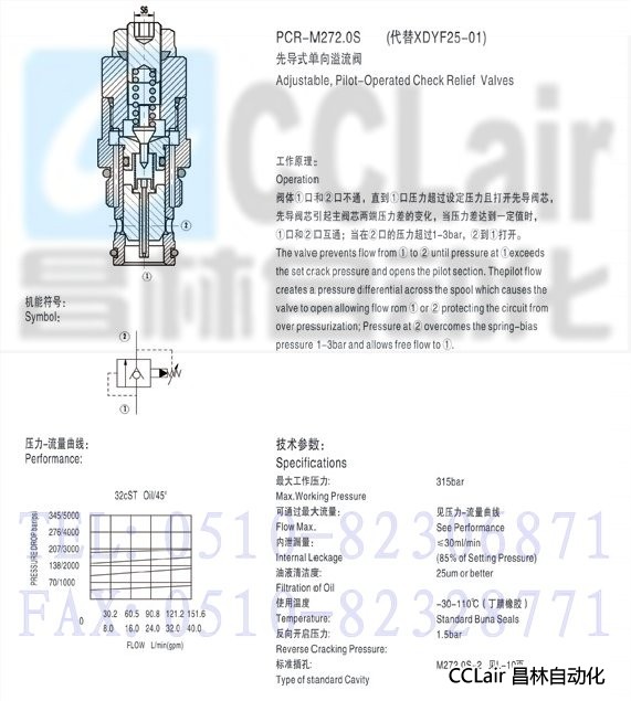 PCR-M272.0S,先導(dǎo)式單向溢流閥
