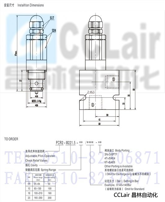 PCR2-M221.5,先導式單向溢流閥