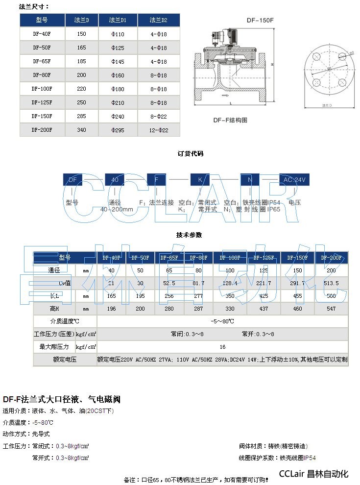 DF-40F,DF-50F,DF-65F,DF-80F,DF-100F,DF-125F,法蘭式大口徑液、氣電磁閥