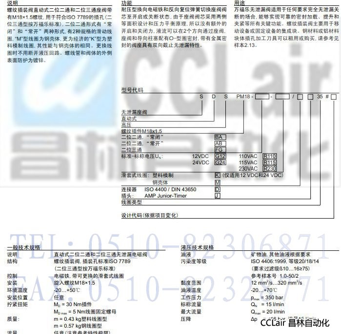 SDSPM18-BA,SDSPM18-AB,SDSPM18-FG,直動式插裝式無泄漏電磁閥