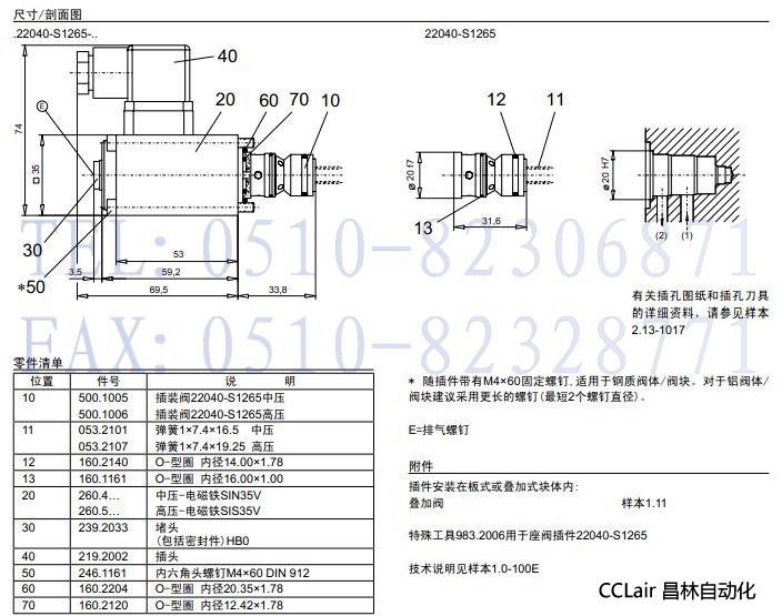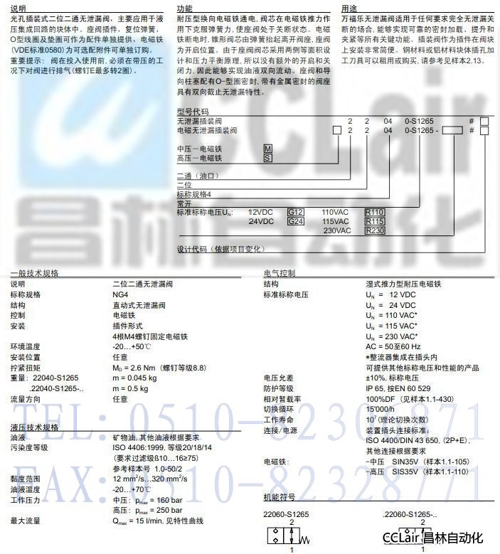 M22040-S1265,S22040-S1265,插裝式無泄漏電磁閥