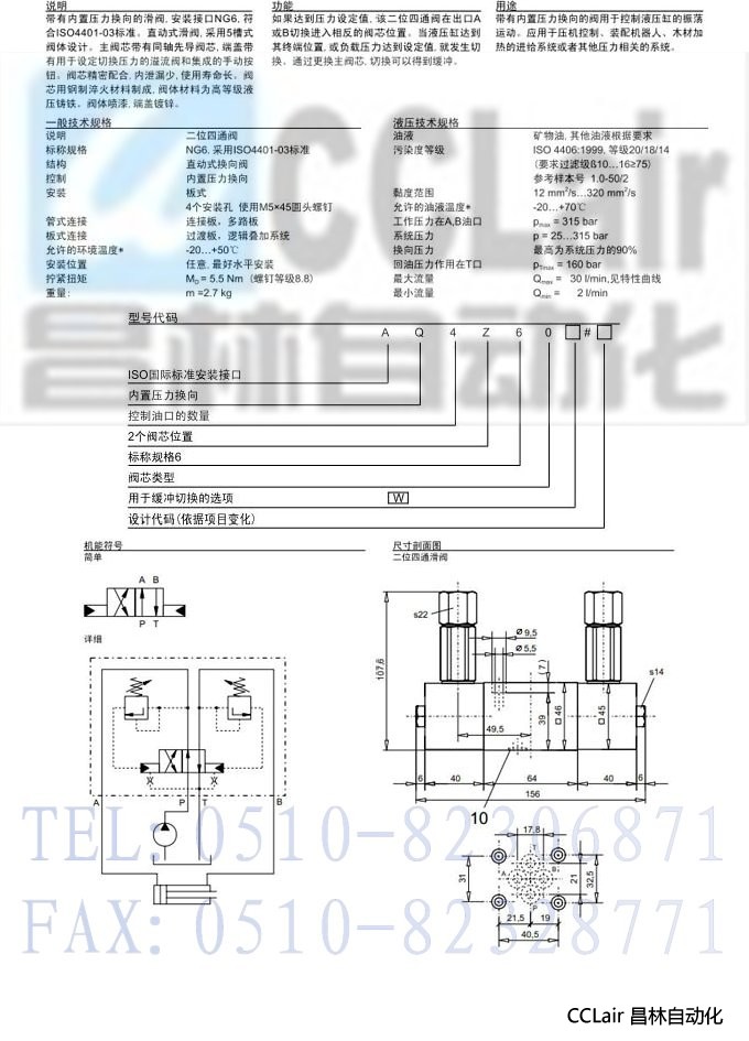 產(chǎn)品: 瀏覽次數(shù):734AQ4Z60W,帶壓力換向的換向閥